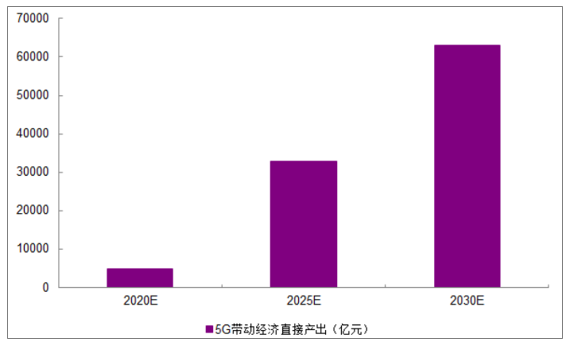 按照2020年5G正式商用算起,预计当年将带动约4840亿元的直接产出,2025年、2030年将分别增长到3.3万亿元、6.3万亿元,10年间的年均复合增长率为29%。