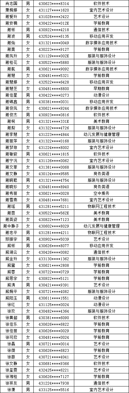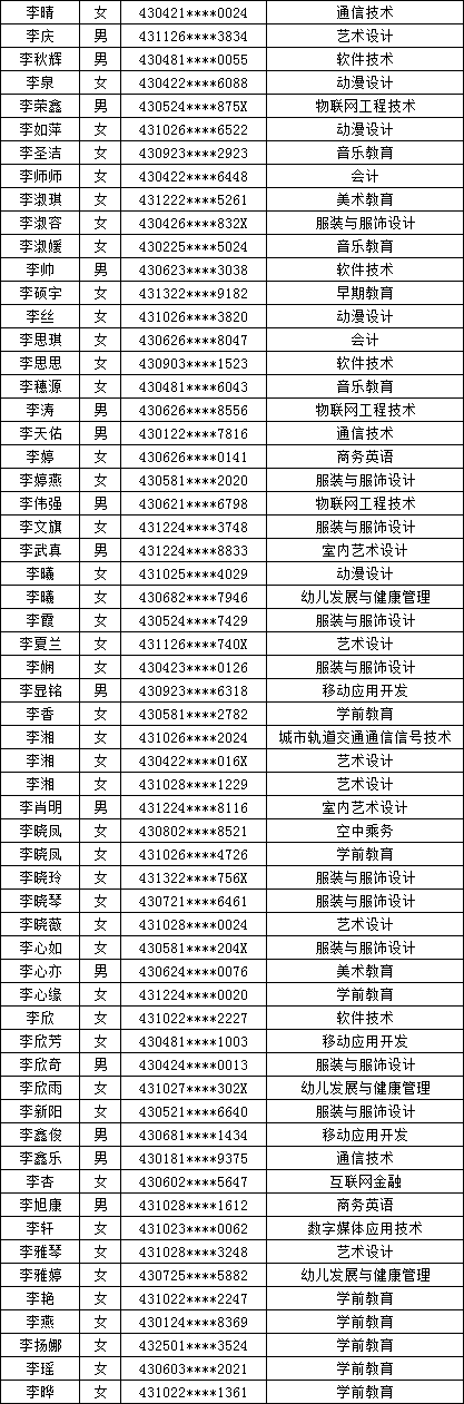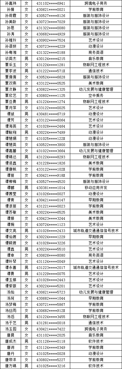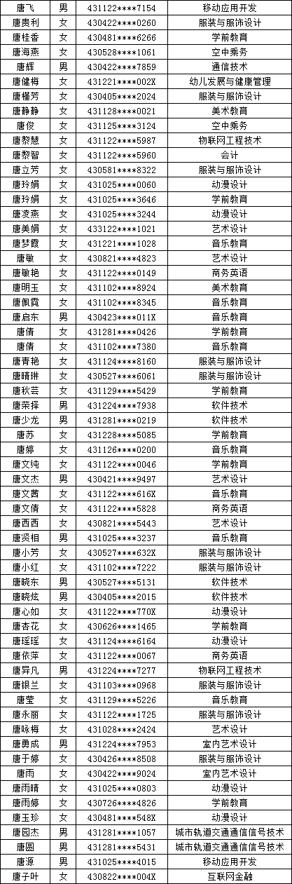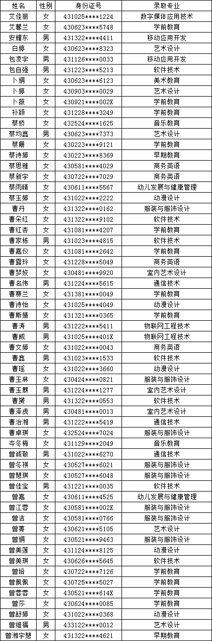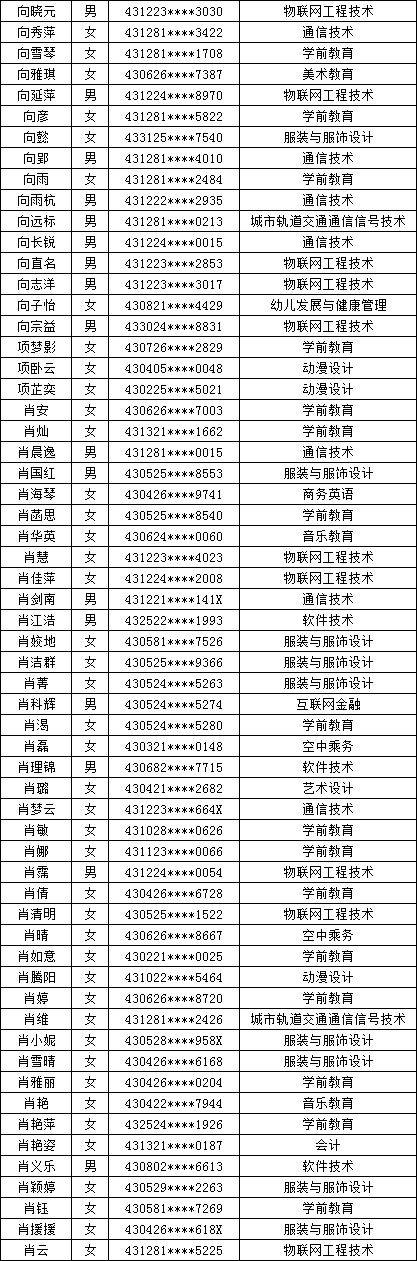 四、单招拟录取名单公示