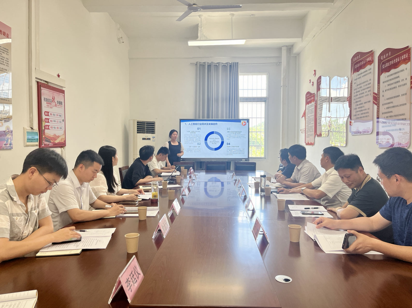 会议伊始,公司现代通信技术、智能互联网络技术、人工智能技术应用以及电子信息工程技术四个专业的专业负责人依次从专业调研情况、培养目标及职业面向、专业课程设置及教学进程安排、教学实施保障及毕业要求等多个核心议题进行论证。
