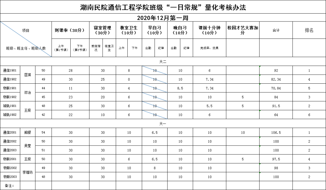 无规矩不成方圆 |第十三周班级评分考核表