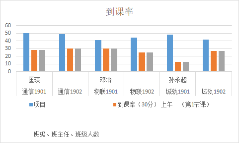从表中可以看出,本周各班表现都非常好,其中通信1901班、物联1902班、城轨1901班、城轨1902班、物联2001班、物联2003班的同学们到课率有待提高,希望同学们再接再厉。