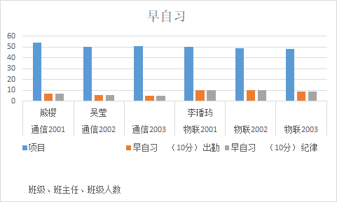 从表中可以看出,早自习通信2001班、通信2002班、通信2003班、物联2003班,希望辅导员及各班班长加强管理。