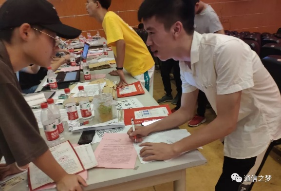 不仅有新生和家长们,还有那些穿着红色马甲和绿色衬衫的学长学姐们,他们顶着这大太阳,以最饱满的热情去接待每个新同学。还有在剧院等候新同学的班助和老师们,他们耐心细心地为新生们办理每一项入学手续。是他们,使迎新工作顺利开展。你们辛苦了!